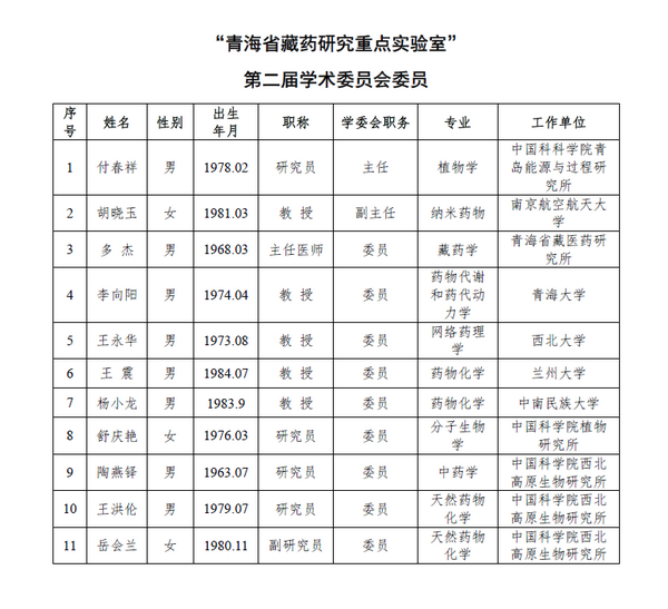 2.青海省藏药研究重点实验室新一届特邀学术委员会成员(详见附表)